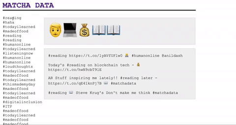 Matcha Data is a public quantified-self-experiment I’ve started in February for my Quant Humanist class. I wanted to measure my activities and track them publicly.